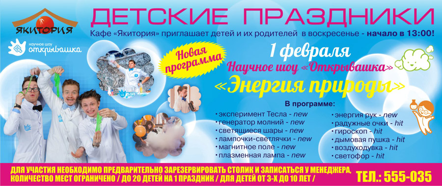 • 8 февраля в 13:00 — кафе «Якитория», ул. Леонова, 59–61, тел.: 56-31-56.