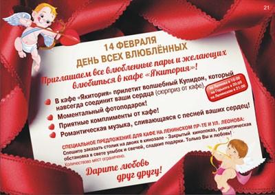 — волшебный купидон, который навсегда соединит сердца влюбленных (сюрприз от кафе: ул. Леонова, 59–61, а в 19:00; ул. Горького, 152 Б в 20:00; Ленинский