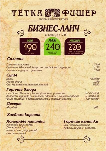 Ресторан немецкой кухни «Тетка Фишер» приглашает на душевный бизнес-ланч.
