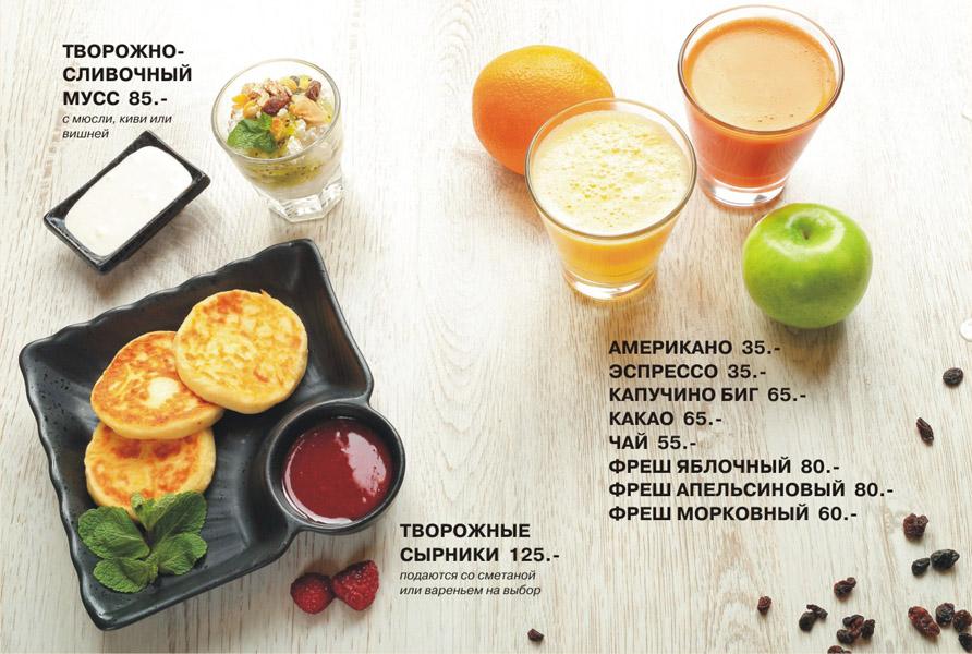 Всегда на ваш выбор: круассан с маслом и джемом, блинчики с соусами, омлеты и сандвичи, наваристые каши, тёплые роллы, а также ароматный чай, кофе по специальной цене.