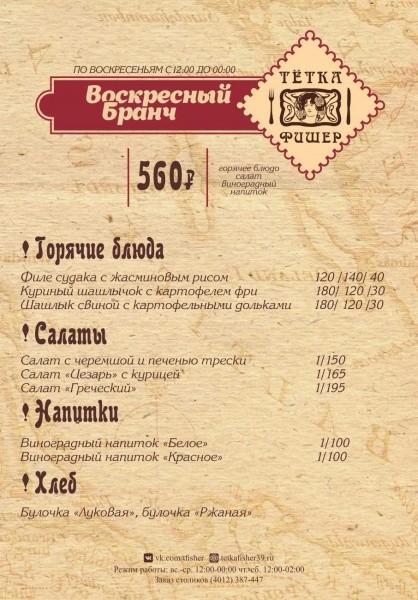 Ресторан немецкой кухни «Тетка Фишер» приглашает на воскресный бранч