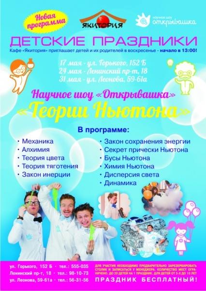 Сеть кафе «Якитория» приглашает на новую программу от детского научного шоу «Открывашка» под названием «Теории Ньютона»::