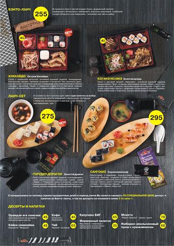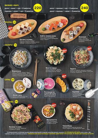 Дополнительные акции во время ланча: вы можете заказывать отдельно по спеццене ролл, салат, суп или горячее из ланча.