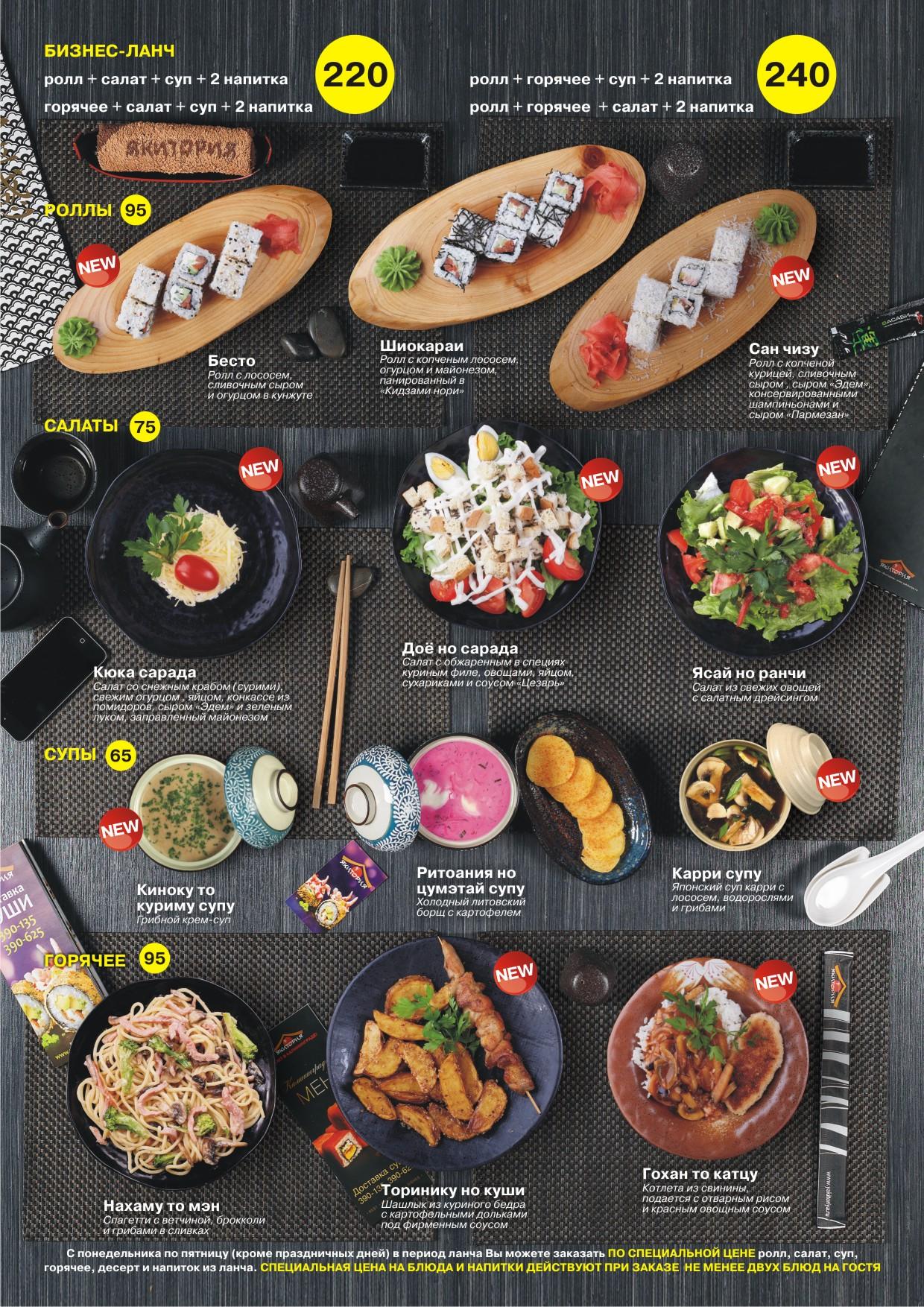 За вкусным обедом проблемы на работе уходят на второй план. Предложение ланчей от сети кафе «Якитория» поразит вас своим многообразием! Позвольте себе сделать перерыв посреди трудового дня и насладиться вкусной едой по привлекательной цене — ланч от 175 руб.