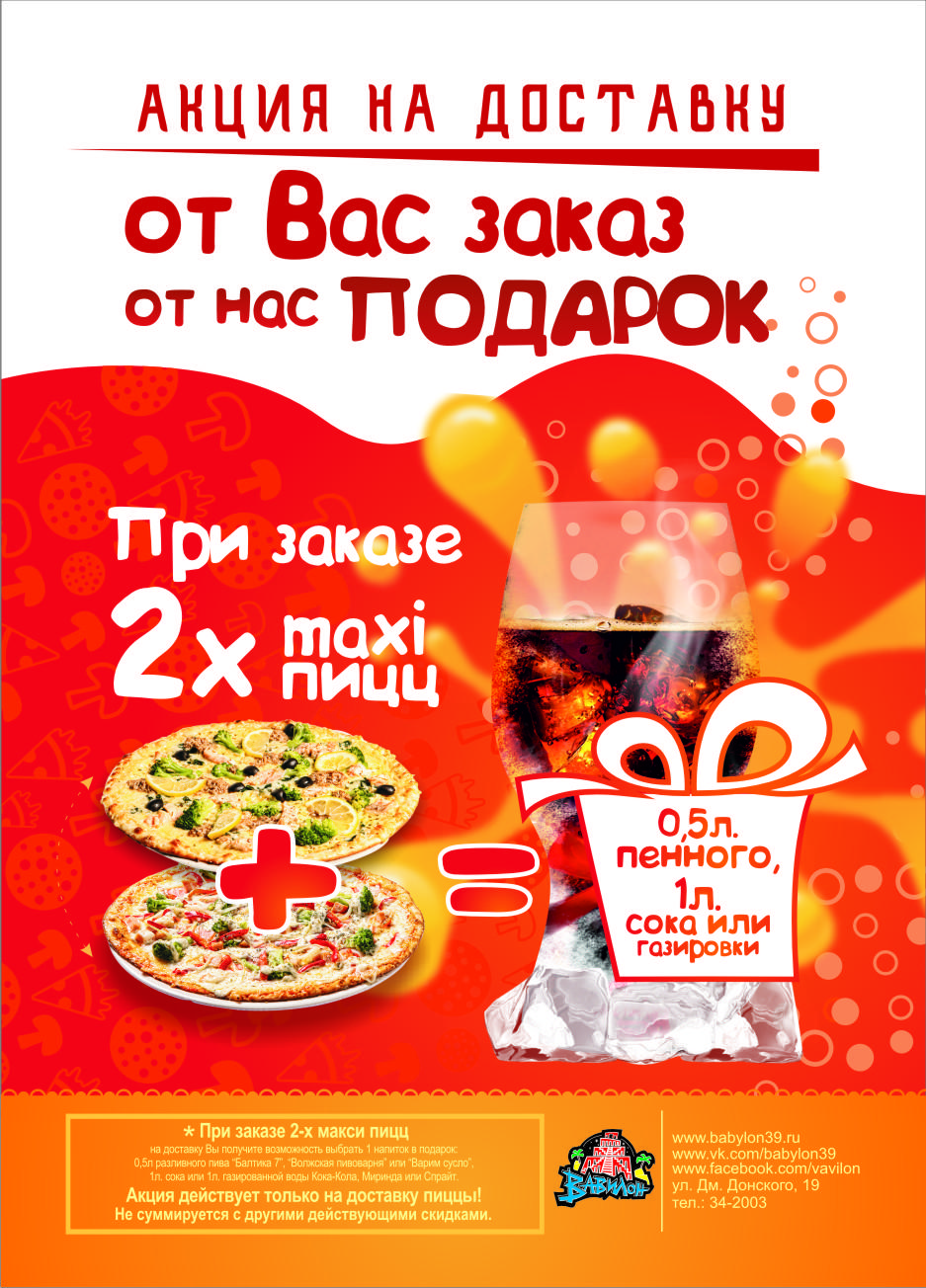 Закажите две maxi-пиццы и получите напиток в подарок!
