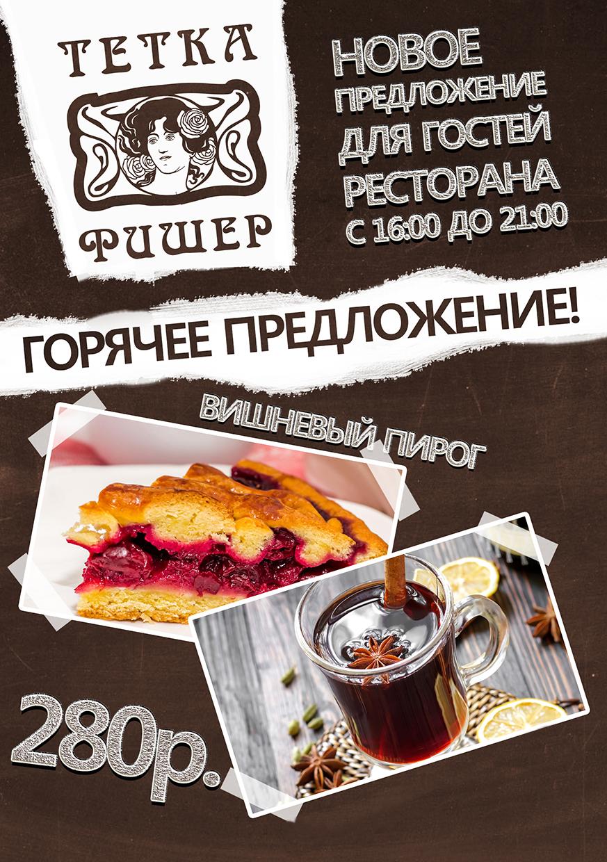 Вишневый пирог и бокал согревающего напитка по цене 280 руб.