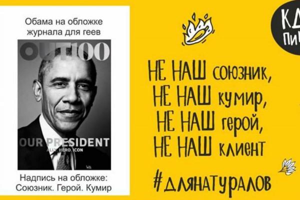 «Мы решили позиционировать свою компанию на людей с традиционной сексуальной ориентацией, мы ни в одном рекламном макете не ущемляем права секс-меньшинств*, мы лишь подчеркиваем, что мы ориентированы на натуралов. А что касается рекламного макета с Обамой, он