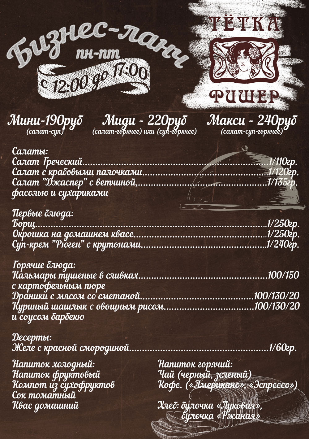 Ресторан немецкой кухни «Тетка Фишер» приглашает на душевный бизнес-ланч.