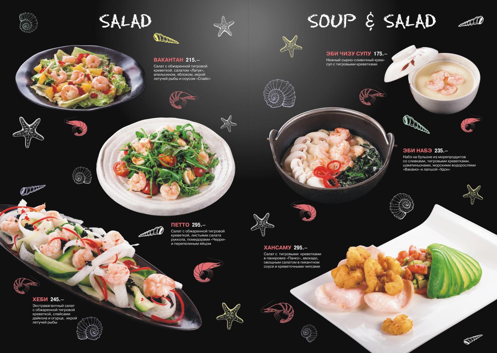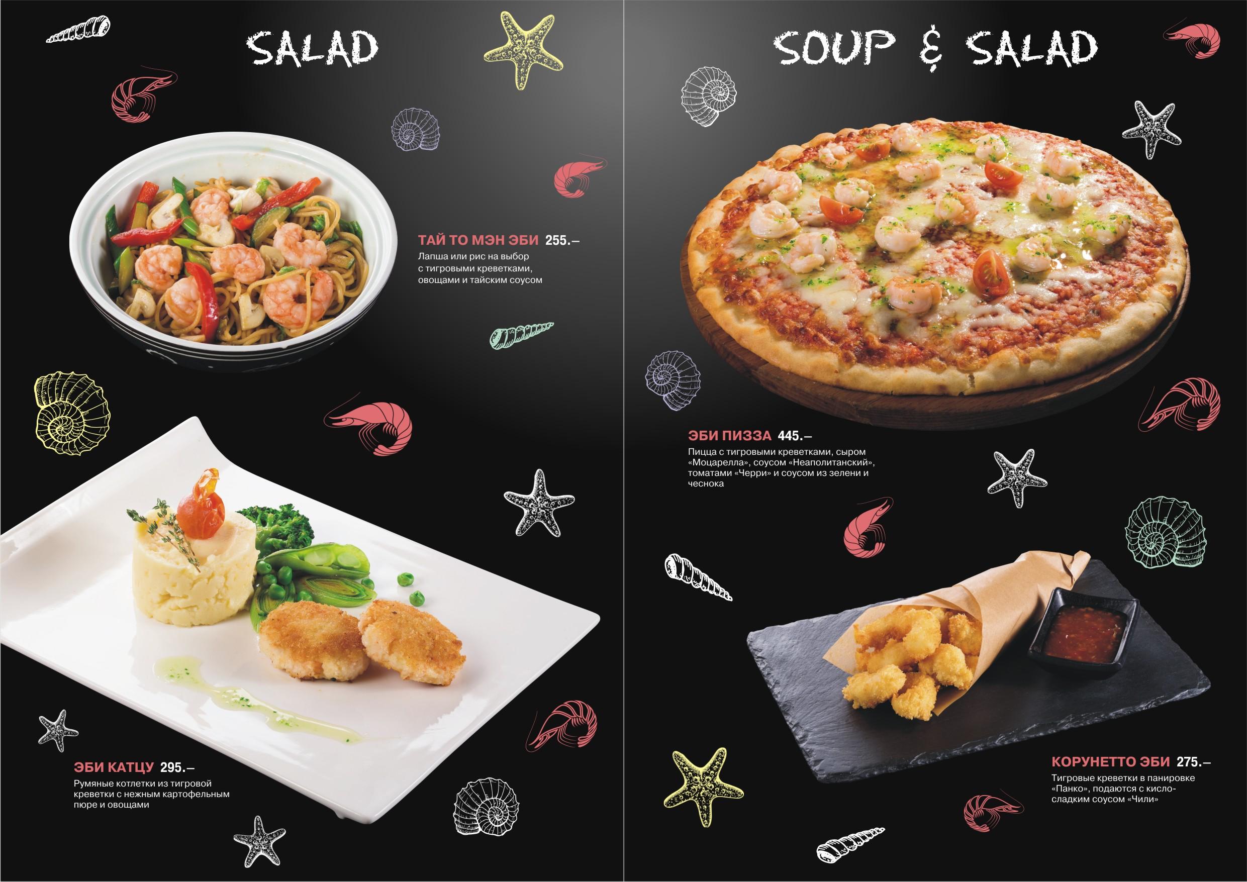 Представляем вам «Эби-меню» — роллы, супы, салаты, горячие блюда, и все эти изыски ну по очень привлекательным ценам!
