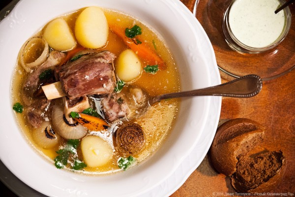 Так, например, медальоны из оленины подают с насыщенным, чуть терпким и сладковатым смородиновым джемом: препарированная классика именно сибирской кухни, от которой бы в восторге остались почитатели того, что в столице принято называть «нордической кулинарией». Бефстроганов из белой глубокой тарелки «переехал» в чашу из домашнего чёрного хлеба — любители сливочных рыбных супов из «Британники» такое изменение точно оценят по достоинству. Изменилась порция охотничьего супа — теперь здесь варят идеальный шулюм, крепкий насыщенный бульон с бараньей косточкой, картофелем, половинкой припущенной на гриле сладковатой луковицы и морковью. Примечательно и то, какой соус приносят к шулюму — сметану, перетёртую с кинзой. Такое сочетание остроты и нежности в одной креманке: хочется просто съесть отдельно с горячей домашней булочкой. Вообще, такой шулюм подойдет и для холодного вечера, и для тяжёлого утра, которое наступает после пятницы. Из рыбы обязательно нужно попробовать филе палтуса, которое подают с идеальным булгуром, жареными боровиками и соусом из сладкого зелёного горошка.