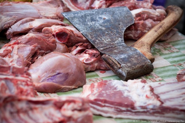 В самом начале мы перепробовали всё местное мясо. И остановились на этом: оно достойное, людям нравится, и важно ещё, что сам поставщик ответственный — поставки без перебоя и в нужном количестве. Ну и цена 185 рублей за килограмм — держим её. Мы работаем с мясом местных производителей: есть одни в посёлке Мельниково Зеленоградского района. Они правильно свинину выращивают, правильно опаливают туши: вот смотрите, видите, какая шкурка мягкая и золотистая? Вот купишь домой этот кусок, начнёшь готовить, и тебе не нужно будет выбрасывать все эти так называемые «издержки производства». Эту шкурку можно готовить и есть.