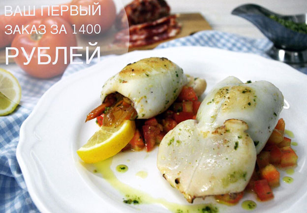 Для первого заказа действует специальное предложение, 3 ужина на 2 человек всего за 1400 рублей.