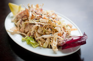 - фирменный салат "Луиза" (говяжий язык, куриное филе, ветчина, яйцо, картофель, соус) 250 г.