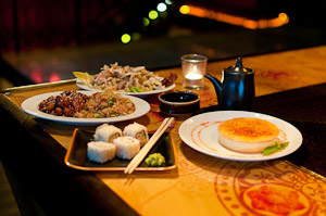 - Филе подкопченной французской утки, салат из руколы, персиковый мусс;