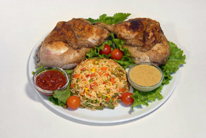 - Сет "Нежный цыпленок-гриль": цыпленок-гриль, жареный рис с овощами, соус домашний, соус горчичный.