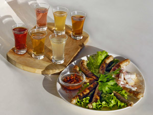 - Сет фирменных настоек (домашние алкогольные настойки собственного изготовления и закусочка) - 400 мл/150 г. - 500 руб.