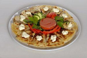- Сет "Кесадилья": мексиканская лепешка с тремя видами начинок (грибная, куриная, телячья), острый соус сальса,сметана, помидоры, огурцы, зелень.