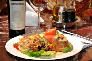- Сannelloni по-домашнему с жареной уткой, сморчками, трюфельным соусом и foie gras.