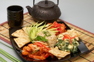 - Говядина, курица, свинина, овощи, рис "Басмати" с пряностями (490 г);