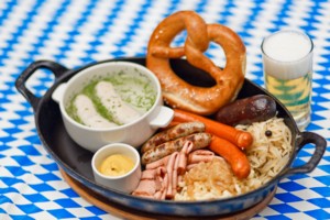 - Сет "Репортёр": настойки собственного приготовления, сало, мюнхенские колбаски, соус домашний, овощи, зелень.