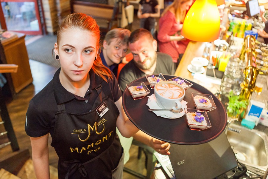 Цена за ужин более чем демократичная — 1250 рублей за четыре блюда и десерт плюс рюмку ледяного «Мамонта». Замечательно и то, что порции были совсем не дегустационными и лилипутскими, а полноценными, что называется «с русским размахом». Гости вечера еще оставались на кофе и говорили, что вечер удался: все, кто хотели давно увидеться, наконец встретились за одним столом.