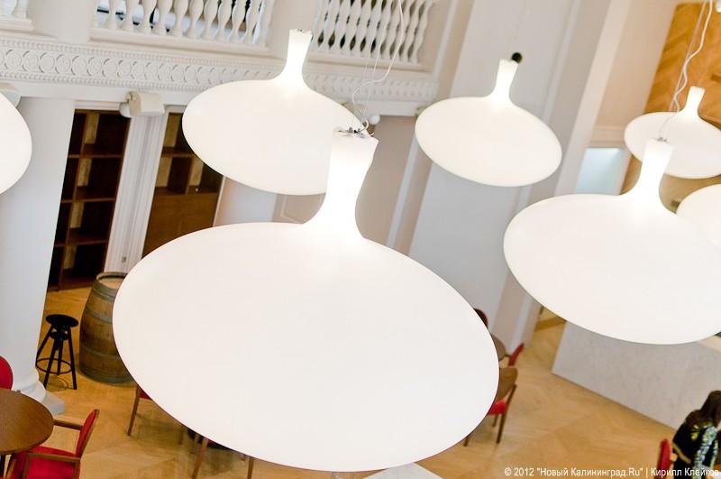 Вместо помпезного зала с лепниной по капителям и картинами в богатых резных рамах, достопримечательностью которого была крутая мраморная лестница — белые стены, потолок и светлый паркет, местами уже поцарапанный. Там, где висела люстра с сотнями маленьких абажурчиков, похожая на взбесившуюся грибницу, теперь ряд гигантских светящихся сфер, тоже белого цвета. На столах цветное стекло, подстановочные салфетки из оберточной бумаги, простые графины с питьевой водой. Меню столь же простое: несколько салатов и закусок, четыре вида супа и пасты (макароны свежие, паста производится в Калининграде), горячих блюд тоже предполагается не более пяти за сезон... Десертная карта отсутствует, вместо неё вам поднесут белый лист бумаги, на котором оттиском напечатают, что можно заказать. Сладкого не более пяти-шести вариантов... Да, от многостраничного меню «Универсала» девяностых не осталось практически ничего, за исключением солянки — ее обещают подавать в три часа ночи, когда изголодавшимся клабберам захочется позавтракать.
