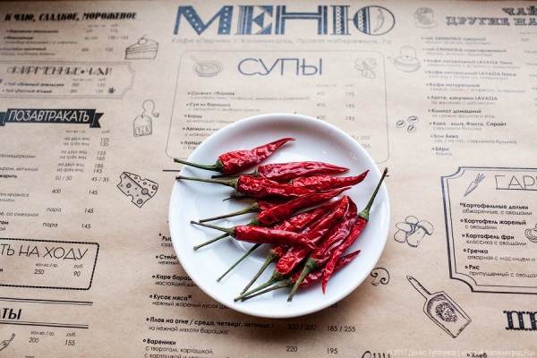 В дождливый и ураганный день «Рестораны Нового Калининграда» отправились на Правую Набережную в кафе домашней кухни «Перчик»: весьма симпатичную столовую, которая находится по соседству (буквально через сайдинговый забор) с популярной городской пастерией «Браво Италия». Из окон — вид на реку и порт, в меню — не итальянская классика, а конкретный и понятный интернационал: лагман, шурпа, манты, пельмени, вареники и хе.