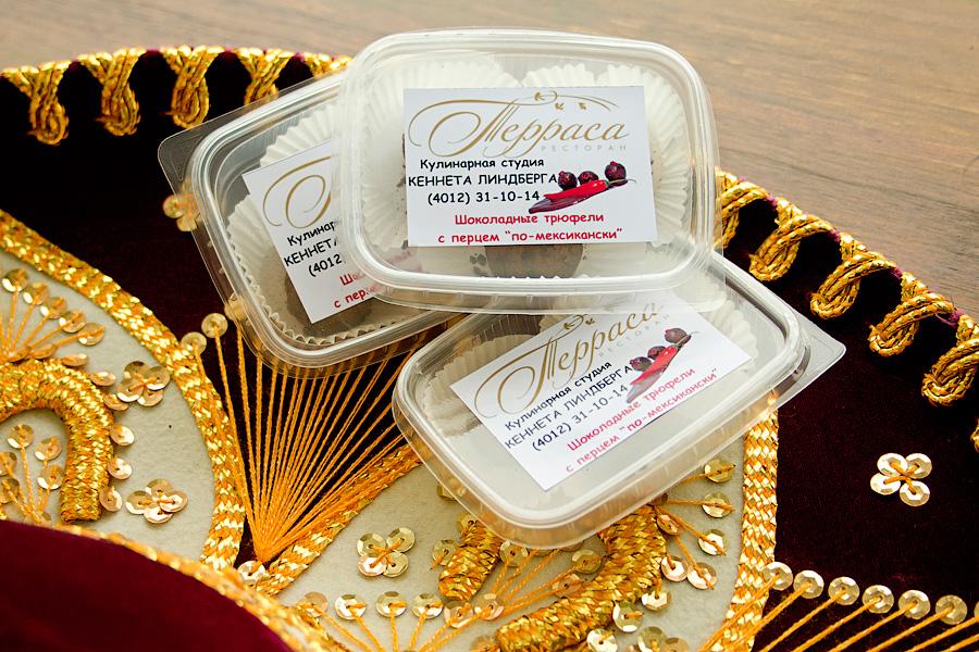 Суп разлит по тарелкам, все усаживаются за стол. Вместе готовили — вместе и едим. Каждому гостю Кеннет дарит коробочки конфет — трюфели с красным перцем, которые сделал специально к этому занятию. Кулинарные курсы в «Террасе» прекрасны тем, что на них каждый может попробовать приготовить что-то сам. Повязать фартук, надеть перчатки и встать к столу. К концу занятия я уже знаю, что вон та женщина в красном платье отлично режет и чистит авокадо, потому что у них дома его едят очень часто, и она же первая за столом сообщает: «Мой муж из Грузии, и почти всю еду берет руками. Он ест руками, давайте и мы будем есть начос и фахитос без приборов». Вон та блондинка неизвестно откуда знает, почему козье молоко полезнее коровьего, вон тот высокий мужчина в черном свитере, который помогать готовить не вызывался, но задавал много хороших вопросов, дома делает начос не в духовке, а в обыкновенной фондюшнице. Вон тот коренастый мужчина, который ходит на курсы со всей своей семьей, а на это занятие еще и сомбреро из красного бархата принес, отлично режет все, что только можно, и под конец получает поощрительное «Да ты просто профессионал!» от Кеннета. Меня же Кеннет назвал профессионалом только после того, как я налила себе суп в тарелку, не запачкав ее краев и не залив стол. В самом деле, высший пилотаж.
