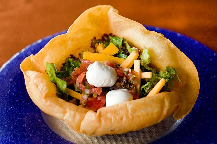 Ингредиенты: лепешка тартилья -1 штука, салат-микс, сыр чеддер — 40 гр., томатная сальса — 50 гр., моцарелла — 50 гр.