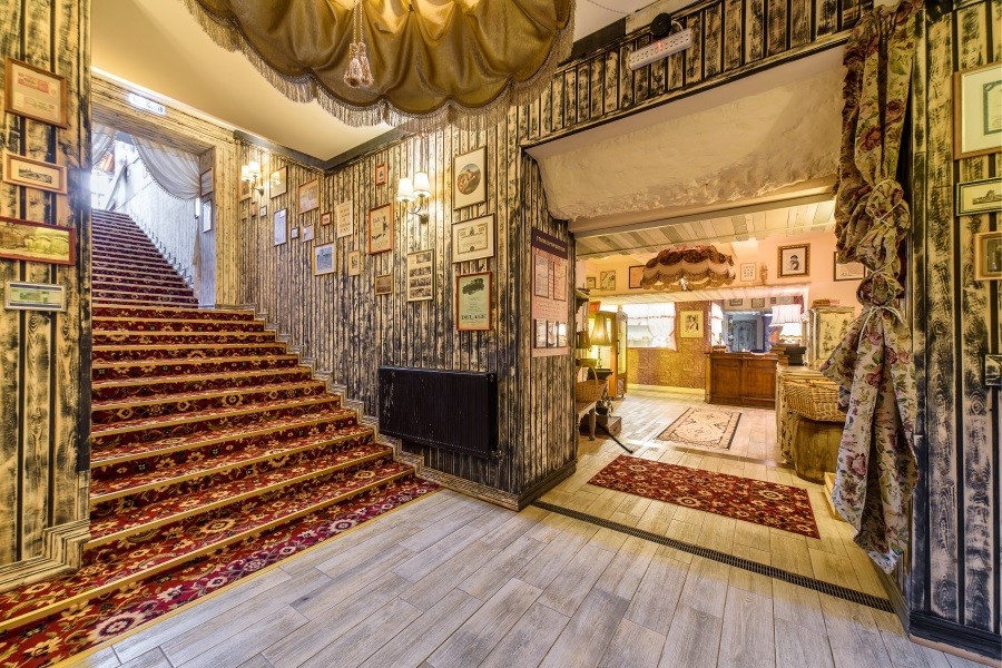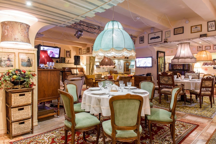 Ресторан занял просторное помещение бывшего бильярдного клуба «Бизон». Правда, от прежних хозяев здесь не осталось ровным счетом ничего. На стенах теперь обои под старину и обшивка из натурального дерева, на полу —