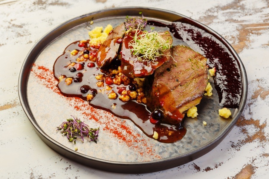 Но закусками в ресторане лучше не ограничиваться (хотя и к ним в ресторане относятся с особым пиететом). Меню изобилует всевозможной русской классикой, по которой многие успели соскучиться среди обилия итальянской пасты, пиццы и японских роллов. Есть кавардак с пряной балтийской килькой и перепелиным яйцом, свиные пятаки, нежнейшее заливное из судака, которое так вкусно перемешивать с приправой из хрена, строганина из пеламиды или мраморной говядины, рыбная уха, томлёные щи для сторонников традиционных гастрономических ценностей, а также жареный палтус с соусом из черники для тех, кто готов отважиться на небольшие кулинарные эксперименты.