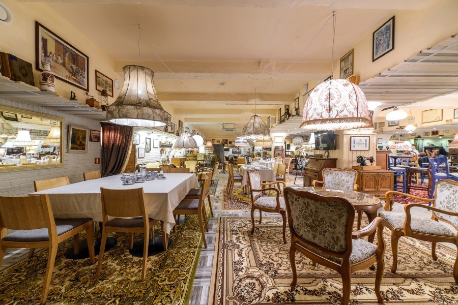 Кстати, компоты, кисели и другие исконно русские напитки в «Плюшкине» делают самостоятельно. Обязательно попробуйте здесь квас — он готовится по старинному рецепту на обжаренном чёрном ржаном хлебе. Получается несладкий напиток с интересным карамельным привкусом. Все десерты и выпечка здесь тоже свои (от изящных пирожных до увесистых расстегаев и кулебяк). Собственноручно здесь занимаются и засолкой продуктов: готовят томаты в деревянных бочках, лосося, свиной окорок, говядину (солонина в «Плюшкине» — предмет отдельной гордости и отдельной статьи).