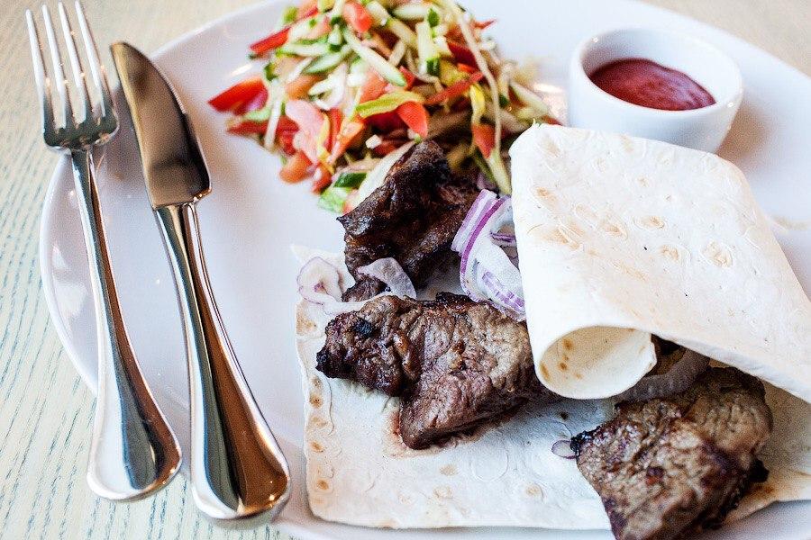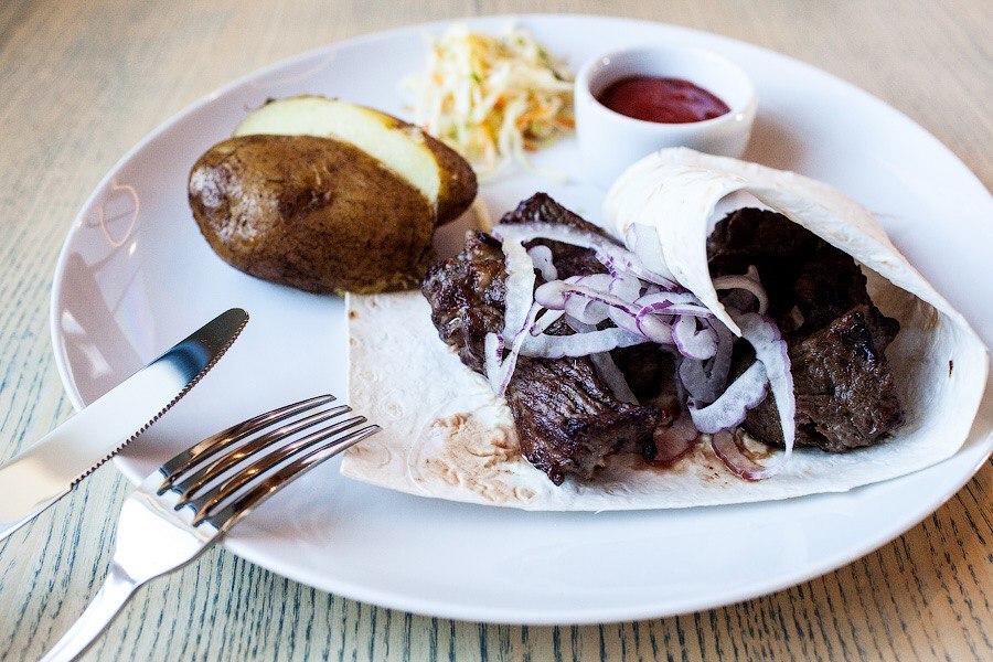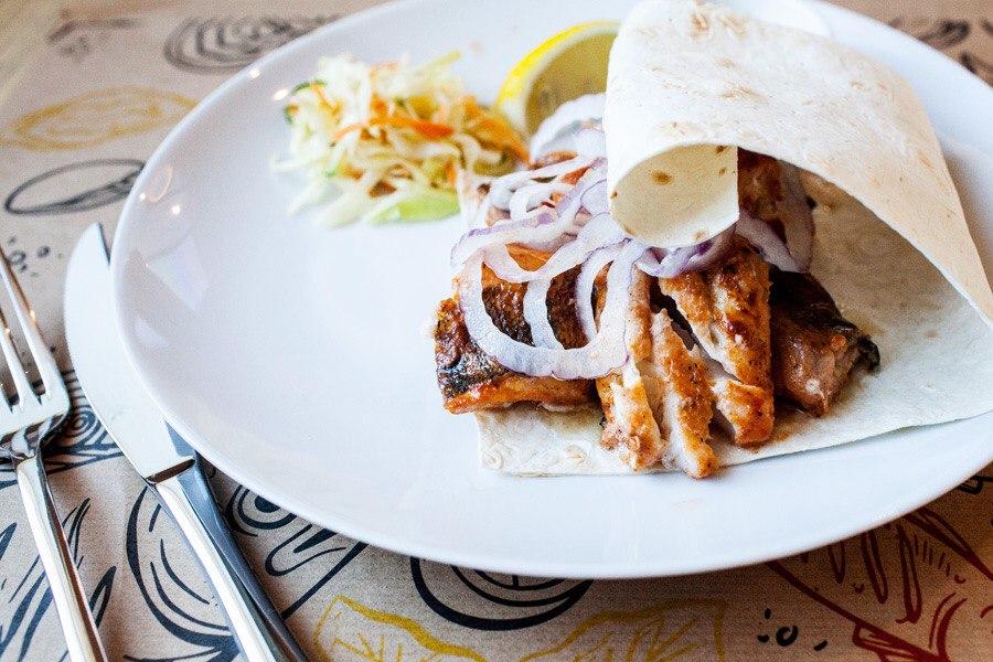В ресторане «Шкипер» меню маленькое — немного холодных и горячих закусок, пара супов, но зато целый отдел, посвященный блюдам, приготовленным на гриле. Изюминка заведения — это настоящий дровяной мангал, на углях здесь готовят угря, нежнейшего палтуса, семгу и судака. Ощущение, что это было выловлено буквально за полчаса где-то неподалеку и приготовлено практически у тебя на глазах — бесценно. Есть пара-тройка мясных позиций — шашлыки из баранины, свинины и курицы. Но заказывать нужно, конечно, рыбу. Гарниры простые: рис, картофель, печеные овощи, свежие хрустящие салаты с кисло-сладким соусом. Для тех, кто хочет охладиться, лучшая позиция — уже известные и любимые тартары и строганина. Все просто и ничего лишнего: соль, перец, травы, лимон, подсушенный ароматный черный хлеб. И одна из замечательных новинок — это то, что мы сразу назвали «рыбным мороженым» — нежнейший прохладный шарик паштета из печени трески, той правильной консистенции, которая, как говорится, «тает во рту». Из напитков здесь вам предложат несколько видов чая, хорошо сваренный кофе, ну и пару позиций пенного для тех, кто любит что-то крепкое.