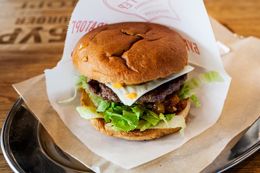 С бургерами разнообразия несколько больше, нежели с мясом, да и демократичной душе есть, где разгуляться, добавив к основе еще одну котлету из мраморной говядины, жареное яйцо, халапеньо или, на худой конец, ломтик чеддера — за дополнительную плату, конечно. Сотрудник, принимающий заказ, почти обязательно осведомится о желаемой степени прожарки котлеты, но не рассчитывайте обязательно получить вожделенный medium rare — при большом наплыве посетителей в обеденное время на выходе вполне может случиться well done. После оплаты заказа кассир выдаст пейджер с порядковым номером и отправит вас в зал ожидать сигнала устройства.