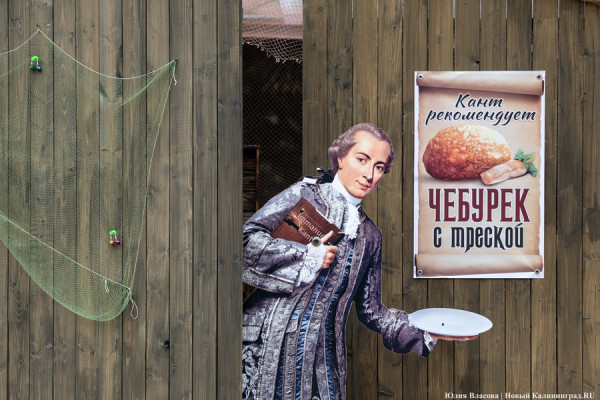 300-летие Канта во вторник, 23 апреля, предложили еще и попробовать на вкус. С этой целью у Кафедрального собора развернули ярмарку с шашлыками, пловом, кантвейном и тантамаресками. Не обошлось и без традиционных ляпов: одна из ростовых фигур, приглашающая угоститься чебуреком, хоть и подписана Кантом, но по факту является Фридрихом Генрихом Якоби, с которым кенигсбергского философа регулярно путают. Недалеко от этого самозванца тот же портрет Якоби, прикидываясь Кантом (вероятно, у него просто более продающее лицо), предлагает попробовать картошку фри.