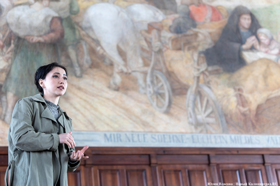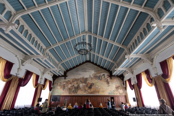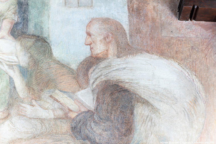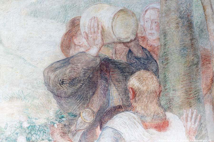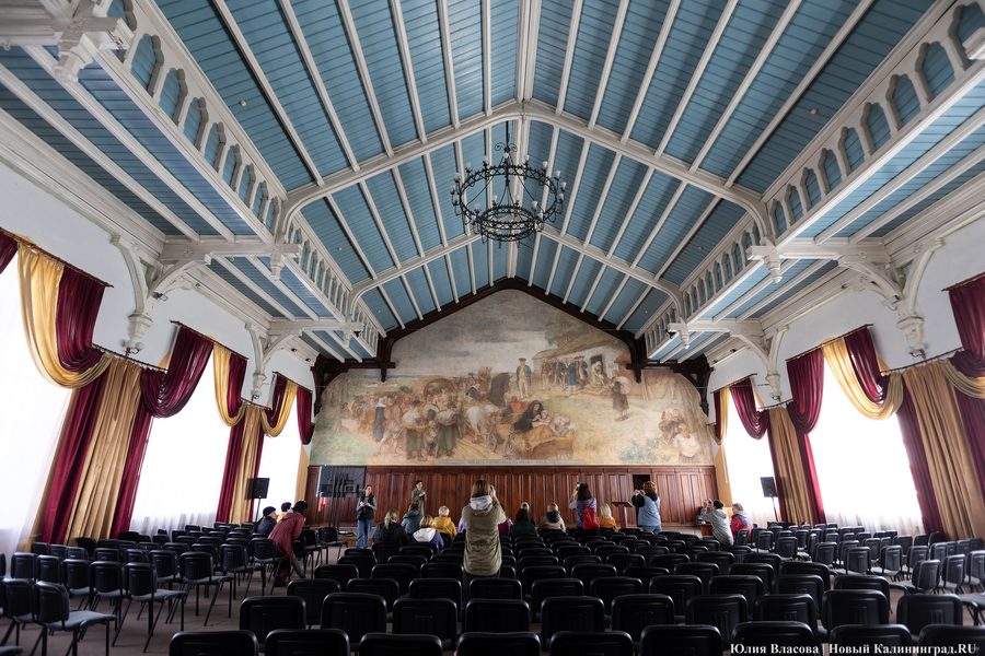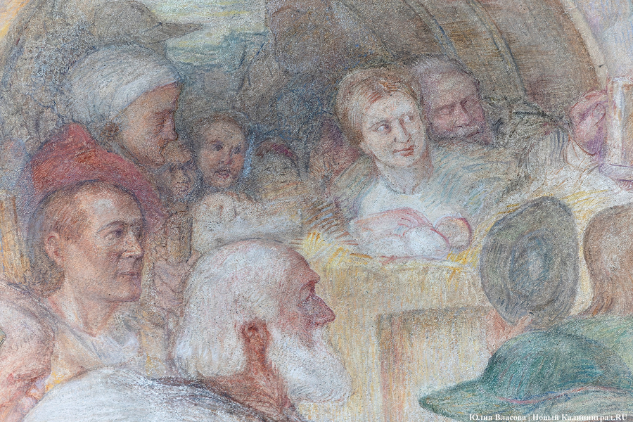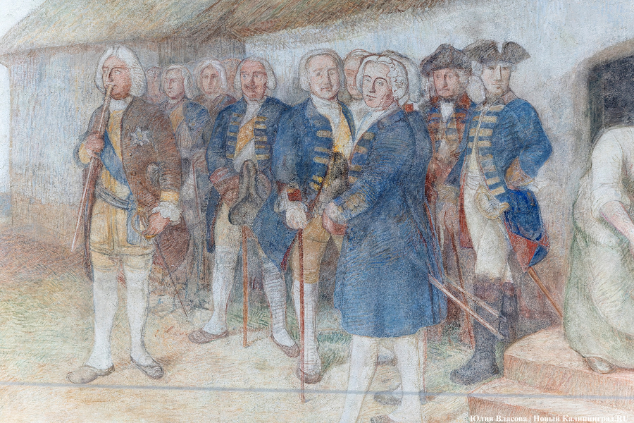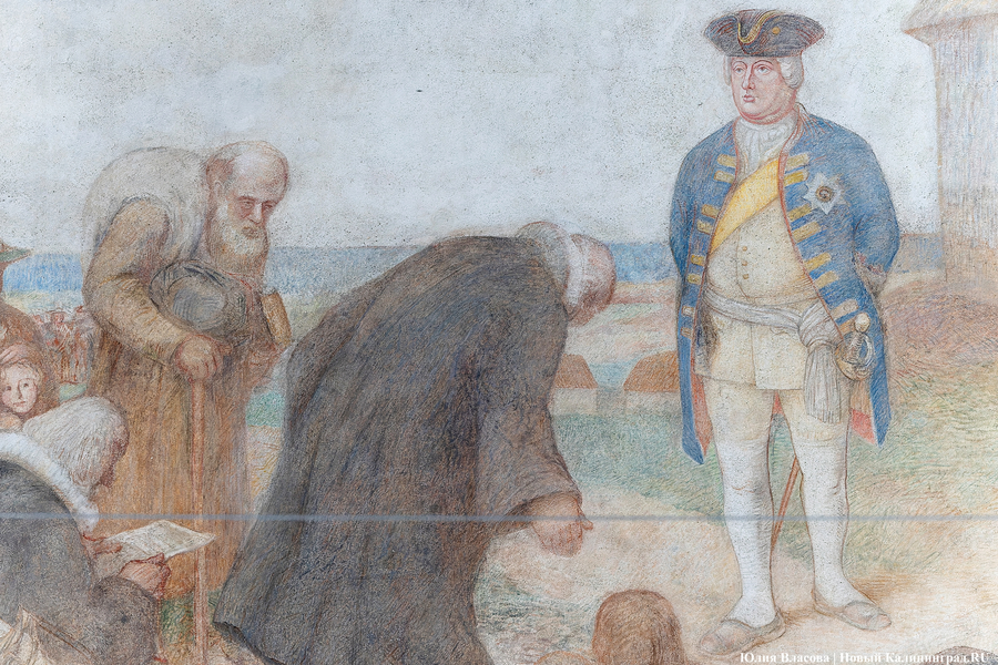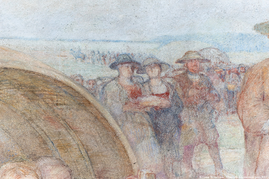 Фреска Отто Хайхерта в гусевском колледже агротехнологий и природообустройства в конце мая этого года отметила 16-летие своей реставрации. Работа площадью 32 квадратных метра, изображающая встречу зальцбургских переселенцев прусским королем Фридрихом-Вильгельмом I, была восстановлена в 2008 году (в советское время ее закрасили меловой краской). Эти работы проводились под руководством реставратора высшей категории Вячеслава Мозгового, прибывшего из Государственного Эрмитажа (под его руководством также восстанавливались горельефы на Королевских воротах). Фреска была создана профессором кенигсбергской Академии художеств Отто Хайхертом в 1913 году. О процессе ее создания и о людях, ставших прототипами короля и окруживших его переселенцев, «Новому Калининграду» рассказала экскурсовод и сотрудница Гусевского историко-краеведческого музея Галина Пелепенко.