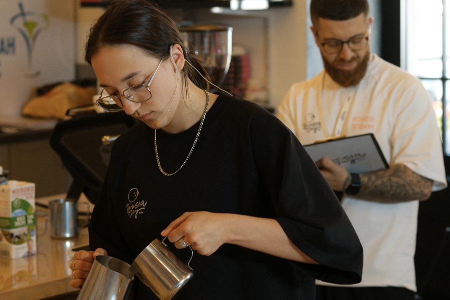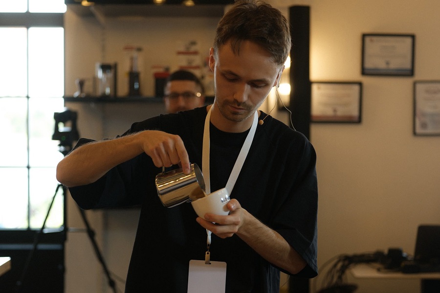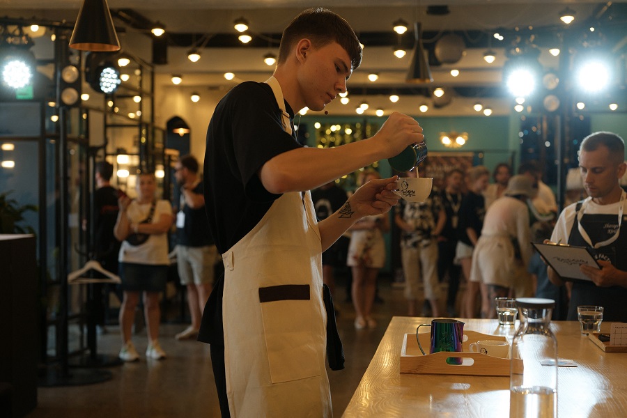 В первом туре конкурса было два задания. Сначала нужно было приготовить эспрессо, подобрав свой уникальный рецепт, а затем продемонстрировать навыки латте-арта, украсив кофейный напиток рисунком из молочной пены, который выбирался случайным образом.
