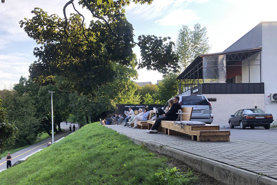 Кафе «Июль» находится на набережной Верхнего озера и вмещает до 80 человек. С воскресенья по среду заведение открыто с 12 до 23 часов, в остальные дни — с 12 до полуночи.