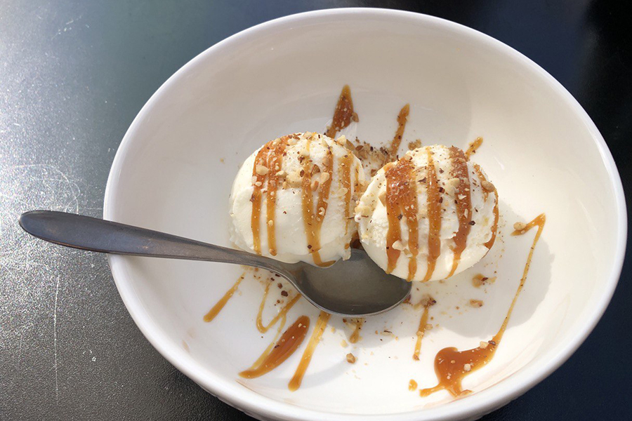 Заведение специализируется на европейской, в частности, французской кухне. Особое внимание здесь уделяют созданию сезонных блюд и напитков с использованием продукции из местных садов и ферм. К примеру, стейк из отборной фермерской говядины можно попробовать за 975 рублей, овощи на гриле с песто из петрушки и зеленым маслом обойдутся в 385 рублей, авторское пирожное «Павлова» — в 450.