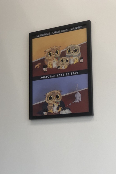 Кроме того, в меню есть шаур-дог, пита, сэндвичи, сырники, наггетсы, картошка фри и напитки. Кафе открыто ежедневно с 9 до 23 часов. Еду можно взять навынос или заказать доставку.