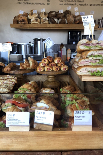 Филиал сети кафе-пекарен «Лев Бородинский», расположенный на ул. Октябрьской, вмещает до 20 человек. Это одно из популярных мест для быстрого перекуса посетителей Рыбной деревни, специализирующееся на выпечке, к тому же всегда красиво украшенное по сезону. В меню есть блюда, рассчитанные на разный бюджет. К примеру, сосиску в сдобном тесте можно приобрести за 99 рублей. Круассан с лососем или фугас с индейкой, фисташками и жареным луком обойдётся в 254 рубля. Любителям сладкого тоже есть из чего выбрать. За 169 рублей можно попробовать круассан с карамелизированным яблоком и заварным кремом, за 297 — безглютеновый маковый торт, за 329 — десерт «Павлова» с малиной.