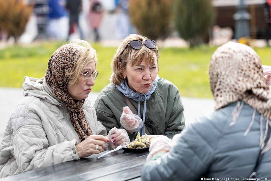 30 апреля в Зеленоградске открылся очередной Фиштиваль — праздник для ценителей морской гастрономии и любителей уличной еды. В этом году фестиваль, как и прежде, развернулся у ЖК «Резиденция» на Музейной аллее. Организаторы сделали ставку на местные специалитеты — гости могут попробовать форшмак из кильки, блюда из леща, увидеть, как делают хрустящие чебуреки с судаком, понаблюдать за приготовлением сливочной ухи в казане.