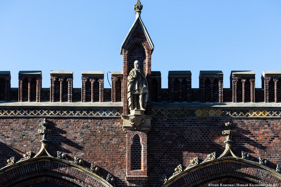 Ну а мы движемся по улице Дзержинского в бывший Розенау. На пересечении с проспектом Калинина видим Фридландские ворота, последние, что были построены в Кёнигсберге.