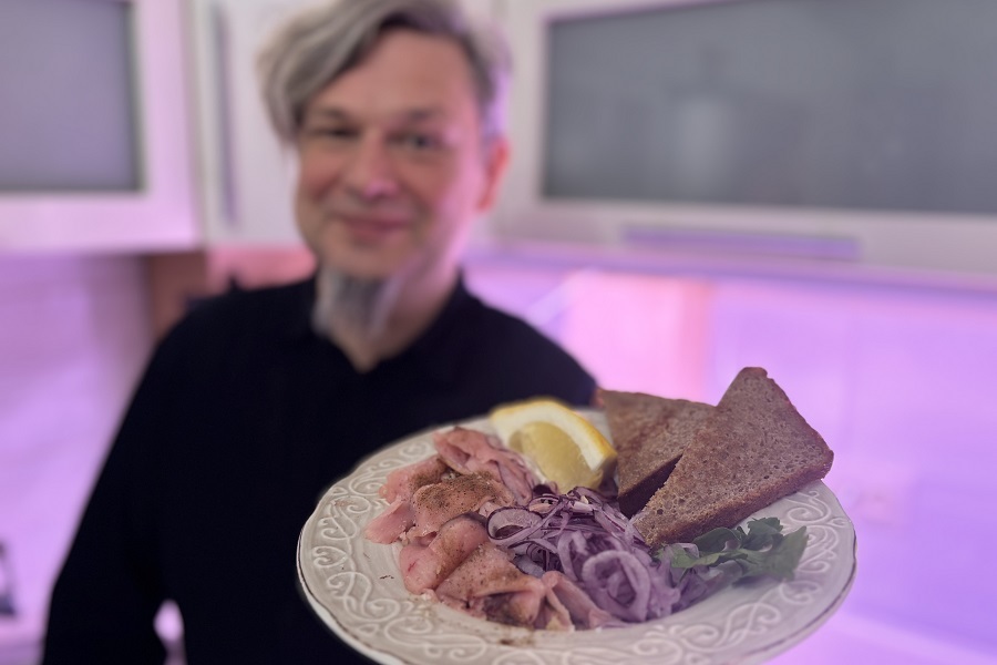 Сегодня мы представляем домашний рецепт строганины из пеламиды, которая уже много лет является важным блюдом для семьи журналистов Кирилла Синьковского и Ольги Саяпиной. Они работают в региональной журналистике около 30 лет, вместе — 26-й год. Кирилл родом из Калининграда (а точнее, Балтийского района), Ольга живет в нашем городе с младенчества — сюда на коксогазовый завод распределили её маму после московского вуза. Оба окончили истфак Калининградского государственного университета (там и познакомились), работали в разных СМИ — от «Калининградской правды» и «Каскада» до «Страны Калининград». Последние полтора года блестящие публикации Кирилла Синьковского и Ольги Саяпиной можно читать на «Новом Калининграде». Кирилл также окончил в свое время «мореходку» по специальности «технология рыбных продуктов», поэтому отлично знает, как делать строганину из пеламиды в домашних условиях.