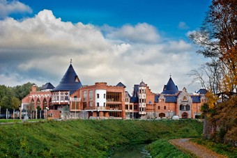 Уже издали становится понятно, почему для этого места было выбрано название, не демонстрирующее излишней скромности. Огромный дворец, сочетающий в себе и сказочность готики, и роскошь барокко, и величие классицизма, и геометрию модерна, требует как минимум королевских регалий. Синтез стилей — обычное дело для исторических объектов, ведь часто замки, построенные в средневековье, с течением столетий перестраивались под новые веяния в архитектуре. «Резиденция королей» в этом смысле претендует на роль если еще не исторического, то туристического объекта — это точно.