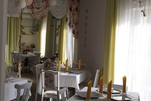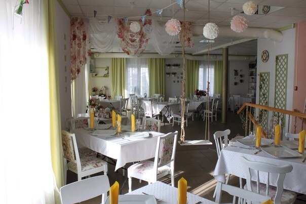 Зал «Дачи» оформлен в стиле «Прованс», интерьер выдержан в белой и