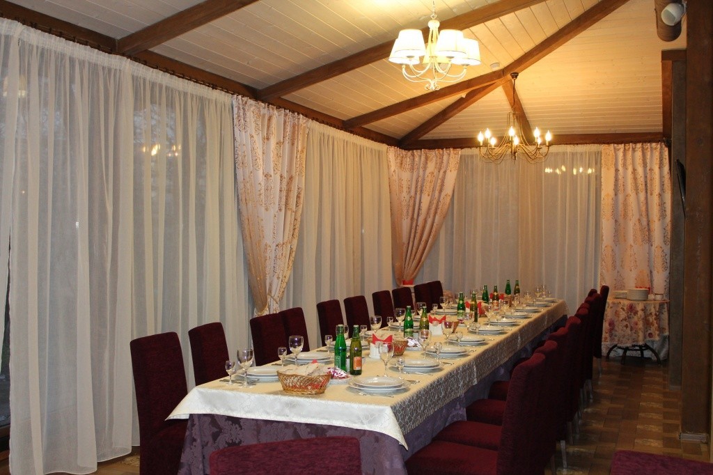 Администрация ресторана рекомендует заранее осуществлять броню всего зала или веранды. Стоимость банкета с одного гостя — от 1000 рублей. При заказе свадебного торта в подарок молодым — каравай от пекаря заведения.