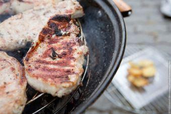 — Наше мясо — свиные ребра и корейку на кости — мы предварительно маринуем в течение суток, чтобы мясо хорошо пропиталось. Маринад делаем из сметаны, минеральной воды и восьми разных приправ: базовые приправы — это соль, перец и чеснок, остальные могут быть любыми, например, розмарин, который добавляет мясу аромат. Все продукты, которые мы используем, — свежие и нежные, поэтому и готовятся они очень быстро. На гриле обжариваем молодой картофель, который мы заранее отварили, и овощи, которые будут выступать в качестве гарнира.