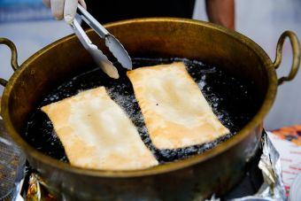 Шашлыки жарят за палатками на вилах, когда повар проносит эти самые вилы, унизанные прожаренным мясом, народ издает восхищенное: «Ах!». Те, кто распробовал литовскую кухню (хотя, казалось бы, ну что необычного: да, литовский борщ, жареная картошка, драники, из непривычного и оттого кажущейся экзотикой — только разве что вот эти картофельные кишки), начинают ходить к другим палаткам с вопросом: «А тут, интересно, что за кухня?». Вот именно здесь, под каштаном, калининградская кухня: кафе-столовая «У Быков» продает бутерброды, салаты в пластиковых баночках, разную выпечку и вроде тоже собирается что-то жарить.
