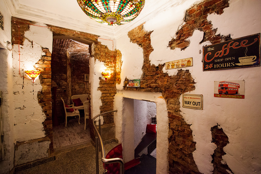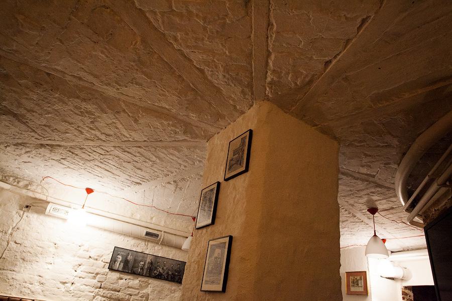 Внутри неожиданно светло: все, что было можно и нельзя, выкрашено в белый цвет, откуда-то появились красные лампы. Все столики в основном зале заказаны, нам предлагают разместиться во втором зале — там ничего особенно не изменилось, кроме пары плазменных панелей на стенах и искусственных каминов в нише. Мы выбираем себе столик с угловым диваном как раз напротив одного из каминов. Впрочем, посидеть именно за этим столом не удается — по столешнице из одного угла в другой бежит таракан. Убегает он быстро, а удивление всей компании таково, что мы не успеваем сфотографировать, по всей вероятности, тайного завсегдатая «Старой клячи».